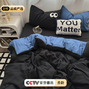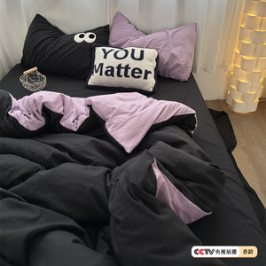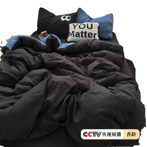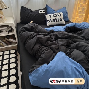 博主insの目は黒と青の水洗い綿のシーツの4セットの学生寮の布団カバーの3セットを混ぜています。