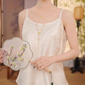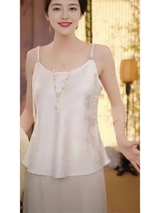 サマーベストボトムスリング2025新国民風ジャカードファッションルーズI年齢軽減痩身快適な女性のトップス