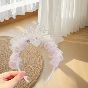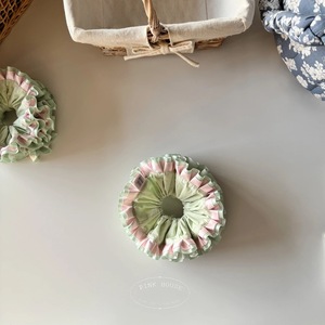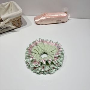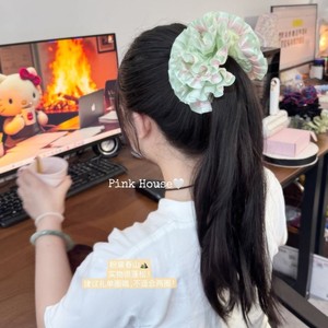 ピンクオリジナルハンドメイド・ピンクと春の山のコントラストカラー甘いレースフルボールヘアサークルヘアアクセサリーリボン