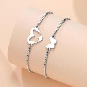 ステンレス鋼のバタフライブレスレットセットハート型中空電気メッキプルチェーンブレスレット女性用中空バタフライブレスレット