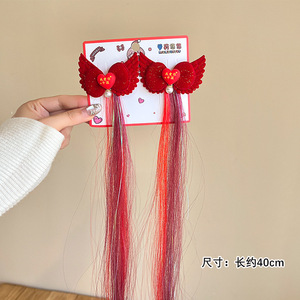 F6337-6型#赤いハートの翼付き 国慶節編み込みヘア