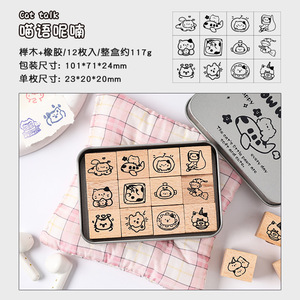 Yuezhen ゆったり猫ブリキ箱木製ハンドブックシール造園素材フォトアルバムシールスタンプ diy ハンドブックシール