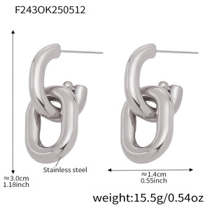 F243-スチールカラー中空ダブルU字幾何学イヤリング