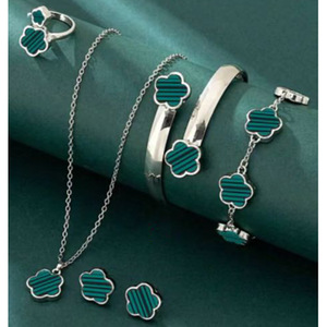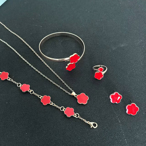 ヨーロッパとアメリカの国境を越えた売れ筋の5枚の花びらの花5点セットネックレスブレスレットブレスレットイヤリングリングヨーロッパとアメリカのエレガントなセット在庫あり
