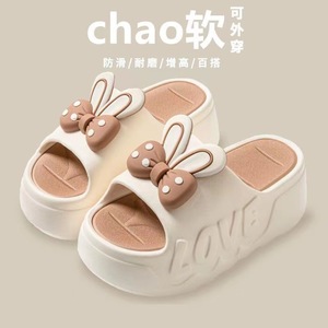 ウサギの耳のスリッパの女性のinsの外はファッションのかわいい厚い底の家庭用の室内で高くなって滑り止めの砂浜の冷たいスリッパの夏を着ます。