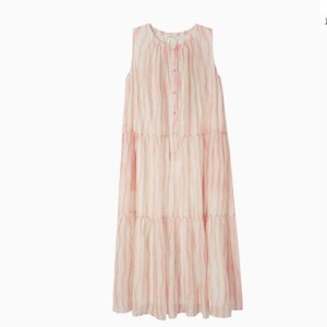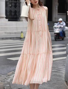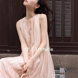 1313気質の女神! 80% テンセルウォーターリップルピンクストライプベストドレスドレープロングスカート