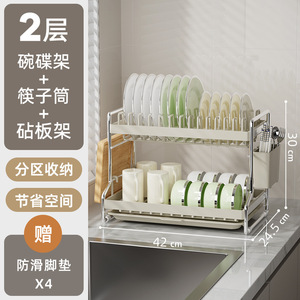 キッチン排水ボウルラック、食器収納品、水管理ラック、箸、ナイフとフォーク、排水バスケット、まな板収納ラックなし