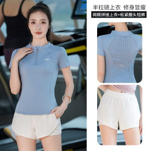 スポーツ上着女性夏速乾プロマラソン朝走スポーツスーツファッション半ファスナーネット赤トレーニング服