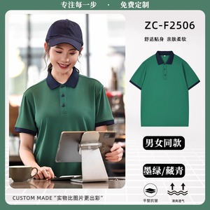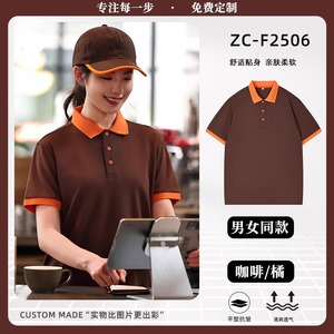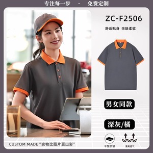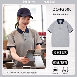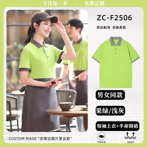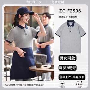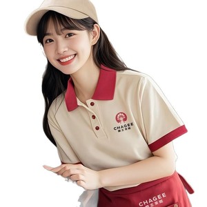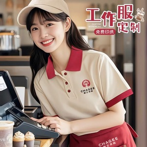 ロゴ刺繍入りミルクティーショップ作業服夏ポロシャツ半袖カフェケータリングサービススタッフウェアTシャツ