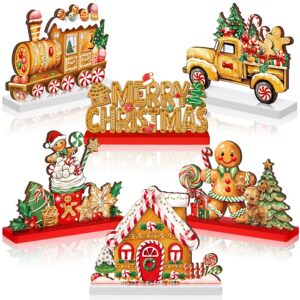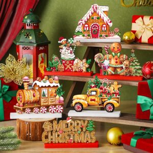 クロスボーダー 6 個クリスマスジンジャーブレッドテーブルデコレーションサイン木製クリスマステーブルトップセンターピース装飾レイヤードトレイ装飾
