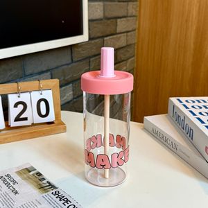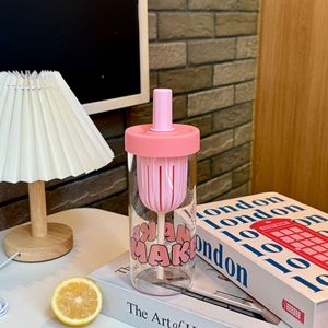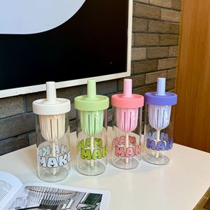 新しい蓋付きティーカップ高ホウ素シリコンガラスカップ女子オフィス大容量茶水分離ストローカップ