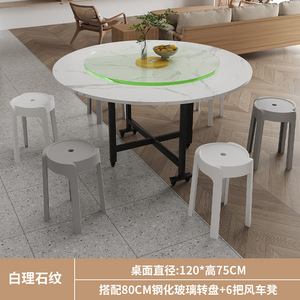 1.2m 白い大理石模様 + 同色のターンテーブル + スツール 6 脚