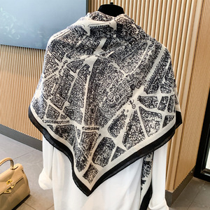 レトロブラック130cm大判スクエアスカーフ春夏綿麻日焼け止めショールと女性用日焼け止めシルクスカーフとガーゼスカーフ