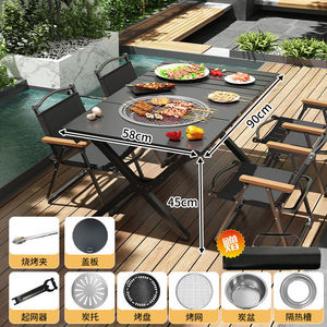 【カップルピクニック】2~4人用丨ブラック90cm焚き火BBQ丨焼き網+4点セット(網リフター+BBQクリップ付属)