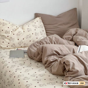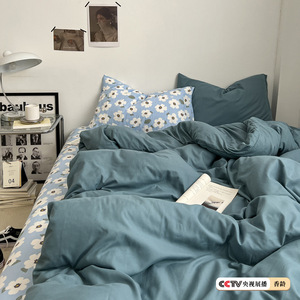 Ins小衆博主風混合砕花シーツ4点セット柔らかい水洗綿布団カバー1点寮3点セット