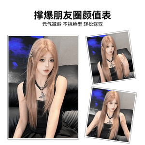 かつらの女性の亜麻のプラチナの長いまっすぐな髪の自然な気質のネットの赤い日はいつも甘くて美しいです。