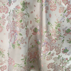 新款国风桃花仙子色织马甲旗袍面料新中式盘扣衫春秋连衣裙提花布