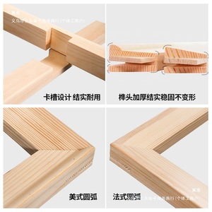 厚く幅広の大型パイン油絵フレーム、ほぞ穴とほぞ穴の内枠、無垢材の細かい細工、デジタルカスタマイズ