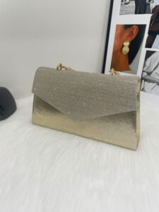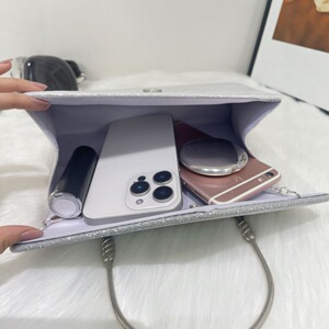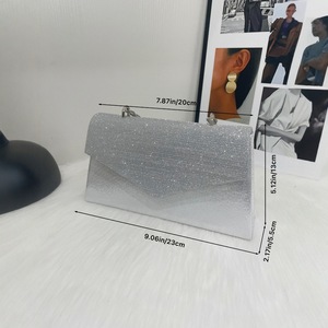 国境を越えて封筒をひっくり返して、女性用の輝くパーティーのハンドバッグを手に入れます。
