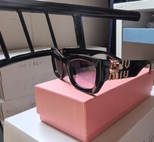 MIU SMU09W ゴールドロゴサングラス 郭彩潔同型 大きな顔を細く見せるサングラス ゴールドロゴ レオパード柄