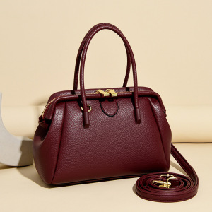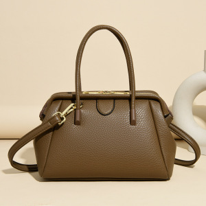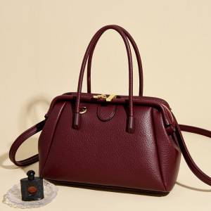 2025新款荔枝纹波士顿包包斜挎包女士手提包简约百搭大容量单肩包
