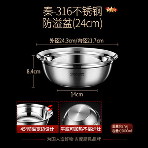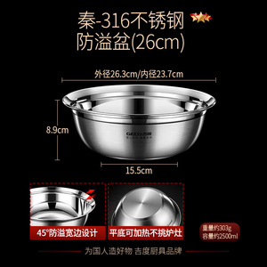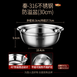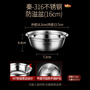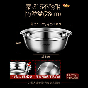吉度316ステンレス製厚手のボウル、スープボウル、ライスボウル、スープポット、キッチン家庭用、卵を泡立てる、生地を練る、野菜を洗うボウル、ギフト