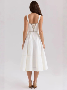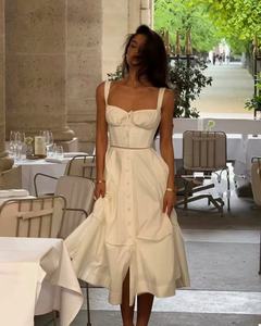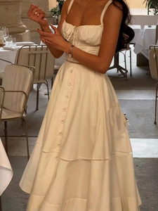 ホットガールピュアディザイアスクエアカラーサスペンダードレス女性のファッションスリムホリデースタイルロングドレス