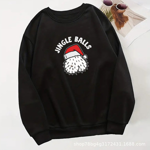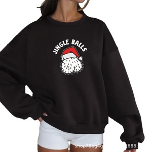 ヨーロッパとアメリカの女性の大きいサイズの秋と冬の新しいクリスマススウェットシャツお祝いラウンドネックヨーロッパとアメリカのサンタクロースプリント女性用