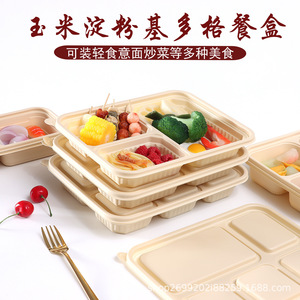 使い捨てランチボックスの販売トウモロコシ澱粉は分解可能な包装ボックスを密封して、多格のファストフードボックスをマイクロ波で加熱することができる