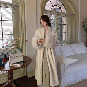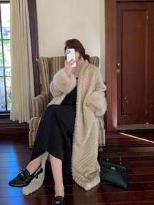 2025冬季新款环保仿皮草长短款外套水貂绒人字纹毛毛大衣年轻气质