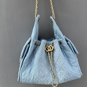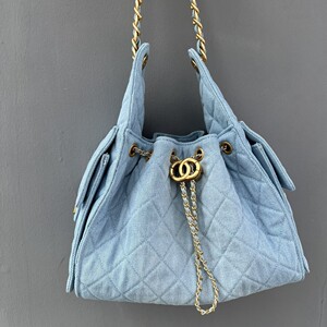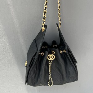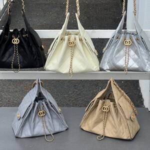 2025新型高級感菱格黒金hobo縄チェーンバケツバッグ小香風脇下女性バッグ高バージョン