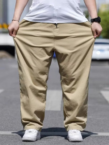 デブの大きいサイズのカジュアルなズボンの男性は春と夏に太って、ゆったりとしたストレートなズボンの太った薄いタイプの緩いズボンを大きくします。