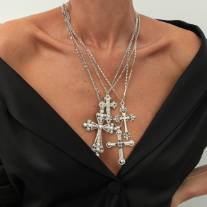 欧米の国境を越えたデザイン感に真珠クロスペンダントネックレスヒップホップins風金属チェーン男女アクセサリー