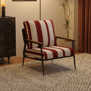 【红色条纹】单人椅+脚凳-金属椅腿-HY0009