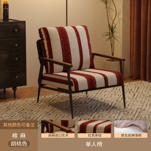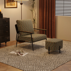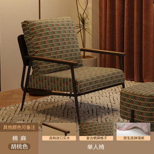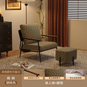 【复古棉麻格子】单人椅+脚凳-金属椅腿-HY0010