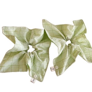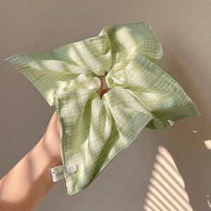 フルーティーグリーン韓国風新作チェック柄ヘアゴム、森風小ぶりフレッシュスクエアスカーフ、甘い雰囲気ボールヘアゴム