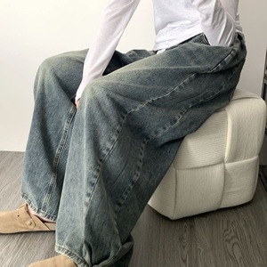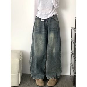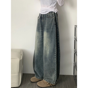 アメリカのレトロなハイウエストのストレートジーンズの女性の梨型の大きいサイズの太ったmmはゆったりしていて、やせています。