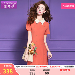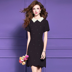 Feimengyi ビーズシャツドレス女性の半袖夏ラペルファッション若いスタイル年齢軽減スリム A ラインスカート