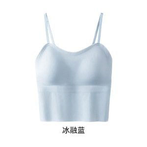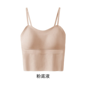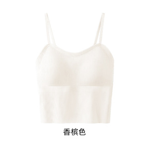 胸パッド付き美しいバックキャミソール、女性用夏用薄いスパゲッティストラップ、インナーとアウター、シームレスで通気性のある固定胸パッド下着