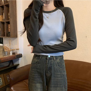 美式复古正肩长袖T恤女2025春季新款修身显瘦新款内搭打底衫上衣