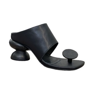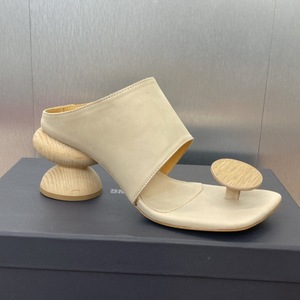 外国貿易ウマハイヒールビーチサンダル、ウォッシュドスクエアトゥ無垢材太ヒール、ウマワンハイヒールサンダル