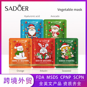 全英文圣诞面膜25g SADOER玻尿酸润肤补水保湿面膜贴跨境批发