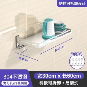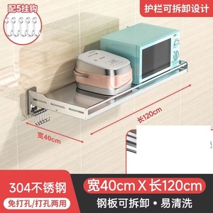 304 ステンレス鋼電子レンジラック壁掛けオーブンパンチング釘不要のデュアルユース多機能ラック