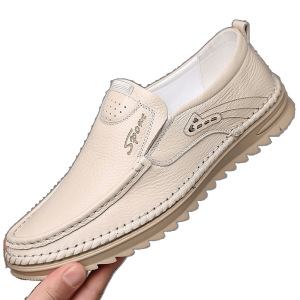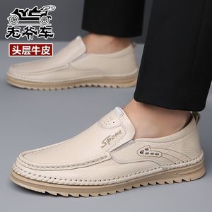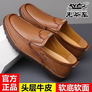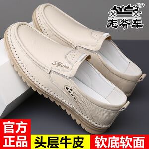Hy老爷车男鞋2025新款休闲皮鞋男士真皮透气软底一脚蹬驾车豆豆鞋