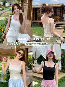 ストラップのベストの女性の胸のパッドの2025新型の夏の薄いタイプの美背の外はブラジャーの一体を着て上着を掛けます。