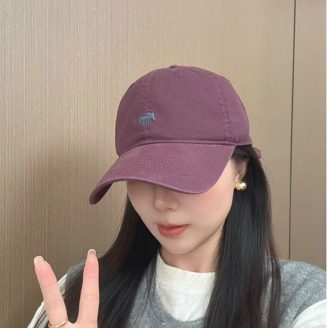 パープル - 小さなキツネの刺繍入りベースボールキャップ