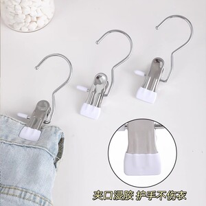 フック付き小型クリップ ステンレス製 靴下用シームレス収納 パンツ乾燥用ハンガー 5個入り 洗濯物用クリップ 衣類用