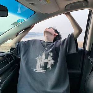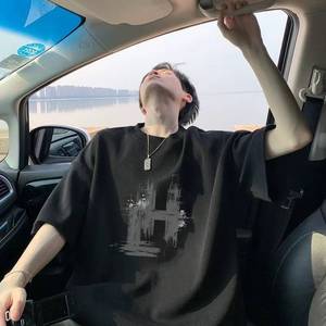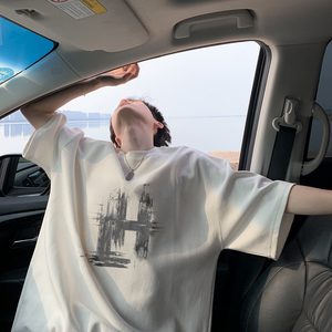 グラフィティプリント半袖Tシャツメンズ夏アメリカンレトロルーズコットンTシャツトレンディなブランドカジュアル半袖トップス