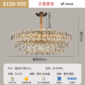 軽豪華水晶灯客間シャンデリア別荘ホール主灯2025新型高級大気主寝室レストラン照明