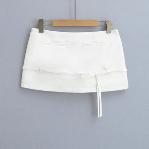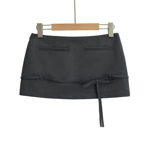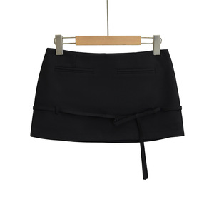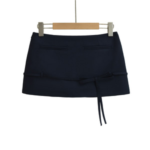 美式辣妹低腰抽绳蝴蝶结系带迷你裙女防走光带底裤纯色半身裙子